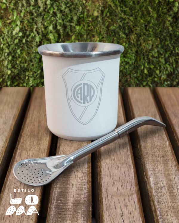 Fabricado con acero inoxidable de alta calidad, este mate combina durabilidad y estilo, con un diseño único inspirado en el fútbol que te permitirá disfrutar de cada sorbo mientras llevas tu pasión a todas partes.